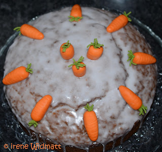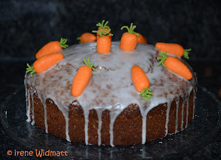 Wieder einmal verging die Zeit sehr schnell und schon ist Ostern! Wir hatten letzte Woche, bis zum Grün- Donnerstag noch Schule, Kindergarten und Spielgruppe. Nun haben die Kinder Ferien. Am Karfreitag sind wir traditionsgemäss, bei der Verwandtschaft meines Lieblingsmannes eingeladen. Üblicherweise bringe ich da ein Dessert mit, gerne wird ein Cake oder ähnliches geschätzt. Dieses Jahr durfte ich den Gastgebern mit einer Rübelitorte eine Freude bereiten. Mein Rezept der Rübelitorte, dass ich nun seit Jahren immer mal wieder backe, stammt aus dem Betty Bossi Buch *Kuchen, Cakes und Torten* Da wird es als Cake gebacken, geht aber genauso gut in einer 24er Springform. Die Rüeblideko ist aus Fondant geformt und auf den Zuckerguss gelegt. Wie es die Rüeblitorten/Cakes so an sich haben, ist es optimal wenn sie etwa 2 Tage durchziehen können, sie schmecken aromatischer und saftiger als am Backtag.