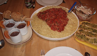 Ein einfaches, schnelles Essen, das mit dem Zimt zu überraschen wusste. Der Salat war uns etwas zu sauer, aber ansonsten eine neue Entdeckung und vorgemerkt. Die Spaghetti samt Sauce fand auch Anklang, wobei eher weniger bei den Kindern, die mögen Teigwaren am allerliebsten nature. Da kann Jamie aber nichts dafür 🙂 Die Schokoladencreme fanden alle ausser mir etwas heftig schokoladig. Das Knoblauchbrot war super knusprig und sehr fein, keines der drei kleinen Mitesserchen hat sich über die Petersilie beschwert, das gibt es noch mehr!