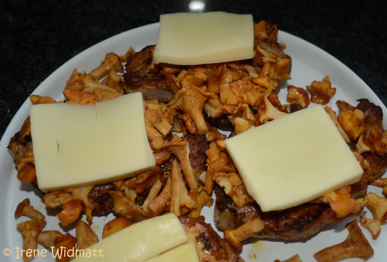 Ein Teil meiner Familie mag Fleisch vom Knochen. So mache ich ihnen eine Freude und bereite ab und zu ein Kotelett oder ein ganzes Poulet zu. So viele ganze Poulets vom Grill wie diesen Sommer hatten wir noch nie. Nun standen wiedereinmal Koteletts auf dem Programm. Beim einkaufen sah ich noch ein Körbchen Eierschwämmchen und habe die auch mit heim gebracht. Wie erst vor kurzem diskutiert wurde, habe ich die Pilze vor dem waschen auch bemehlt. Funktioniert einwandfrei, doch meins sind die Pilze nach wie vor nicht. Jedoch hatte ich eine glückliche Familie am Tisch, der Lieblingsmann kam schon zum Haus rein und fragte was hier so fein duftet…..