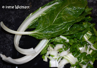 Den Sbrinz fein reiben. Die gewaschenen Krautstiele und Blätter in etwa 3 cm grosse Stücke schneiden. Die Zwiebel fein hacken und in wenig Butter oder Öl andünsten. Krautstiele und Blätter kurz mitdünsten, dann etwas Milchwasser (2/3 Milch, 1/3 Wasser) dazugeben und weich kochen. Mit Salz, etwas Pfeffer und Muskat würzen. Ganz am Schluss den Sbrinz darunterrühren. Die Tomaten waschen und den Strunk entfernen. Nun mit den gekochten Krautstielen ziegelartig in eine Gratinform schichten (5cm Krautstile, dann 2-3 Tomatenscheiben und so weiter). Tomaten mit Salz und Oregano würzen. Möglichst wenig Flüssigkeit miteinfüllen, sonst wird der Gratin zu flüssig. In der Ofenmitte im vorgeheizten Ofen bei 200 Grad, etwa 20 Minuten backen. Der Gratin sollte knusprig braun sein.