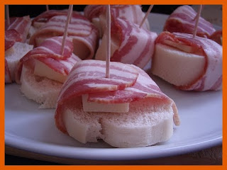 jeweils auf eine Scheibe, ein Stück Käse legen, mit der Specktranche umwickeln und mit einem Zahnstocher fixieren. Das ganze ein paar Minuten grillieren. Wenn die Baquettescheiben leicht braun, der Speck knusperig und der Käse anfängt zu verlaufen sind sie optimal. Ideal geht das mit einem Gasgrill mit einem Deckel, so werden die Brötchen ohne zu wenden richtig lecker.