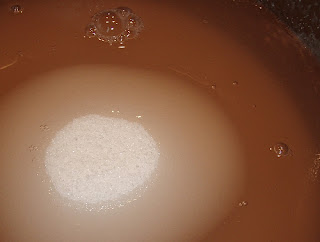 Hier gibt’s kein Gelfix, nur normalen Zucker. So muss ich jedesmal zittern und hoffen ich erwische den Gelee zum richtigen Zeitpunkt. 😉 Das mit der Gelierprobe habe ich nämlich nicht im Griff.