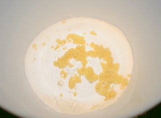 Den Ofen auf 200°C Ober-/Unterhitze vorheizen. Mehl, Zucker, Backpulver, Salz und Ingwer mischen. Butter schmelzen und etwas auskühlen lassen.