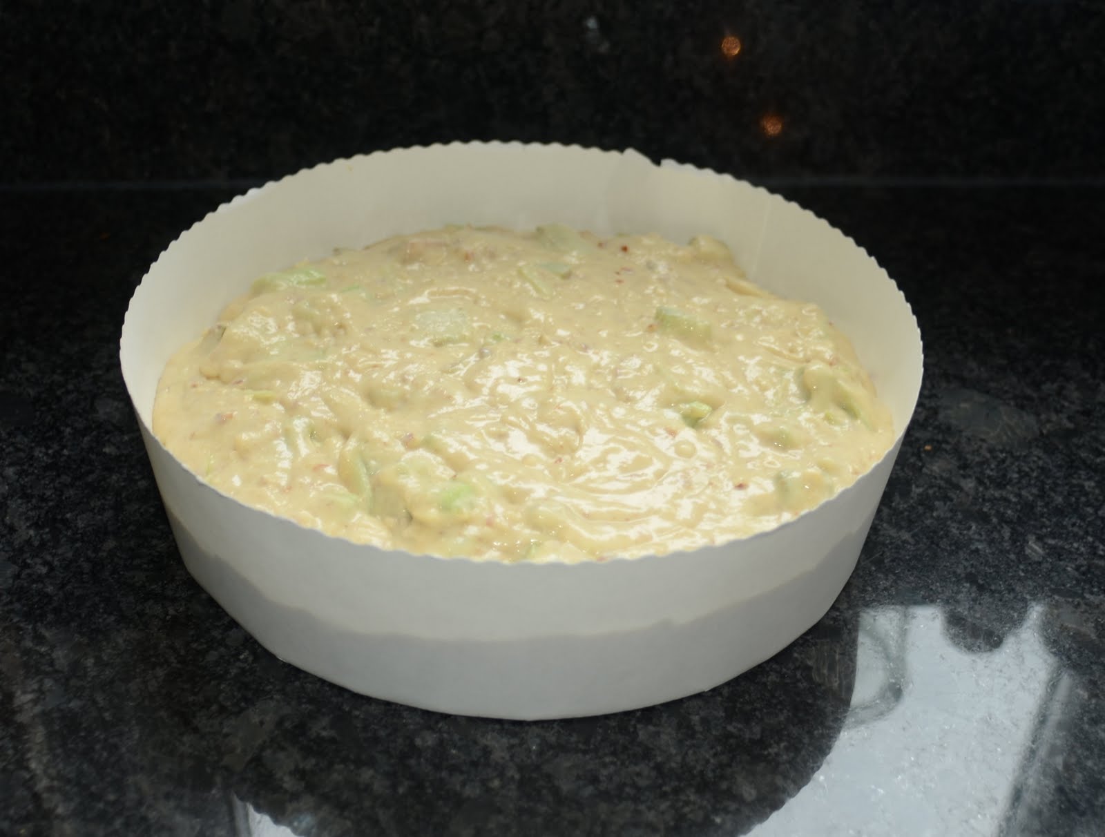 Zuletzt die Mandeln und den Rhabarber unterheben und in die Form füllen. In der Mitte des Ofens etwa 50 Minuten backen (Stäbchenprobe), etwas abkühlen lassen.