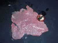 1 Die Rindshuft etwa 30 Minuten ins Tiefkühlfach legen, damit sie aussen sehr kalt bzw. leicht angefroren ist und sich besser dünn aufschneiden lässt.