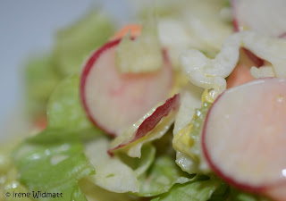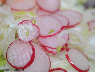 Ich melde mich zurück mit einem kleine Salat, klein aber fein. So ein feines Mittagessen oder als Begleiter zu einem kurz gebratenen Stück Fleisch ist das zurzeit ideal für mich.
