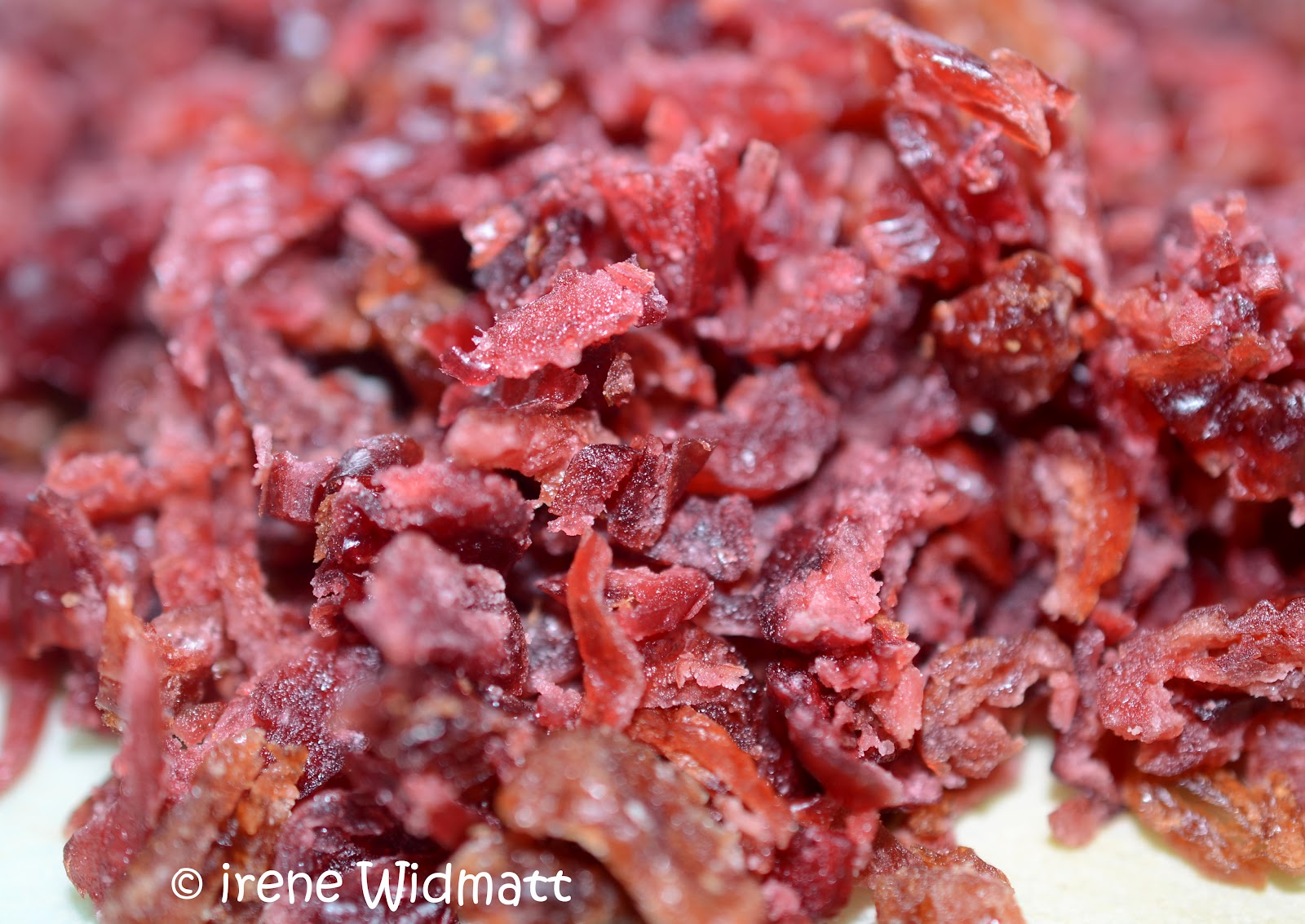 Die Speckwürfeli und die Cranberrys ganz klein würfeln oder hacken. Beides in eine Schüssel geben und das Mehl, die Trockenhefe, das Salz und etwas Pfeffer dazugeben. Alles gut vermischen. Nun das Joghurt und das Ei dazugeben und mit dem Knethacken gut verkneten. Mithilfe eines Spritzsackes die Masse in die Höpfliform geben. Das Beste Ergebnis gibt es, wenn die Masse bis zu 2/3 in die Vertiefungen gespritzt werden. Nun zugedeckt etwa 30 Minuten gehen lassen. Die Höpfli während 20 Minuten bei 200 Grad backen, rausholen und kurz stehen lassen. Nun können die Höpfli problemlos aus der Form gedrückt werden und auf einem Kuchengitter vollständig ausgekühlt werden.